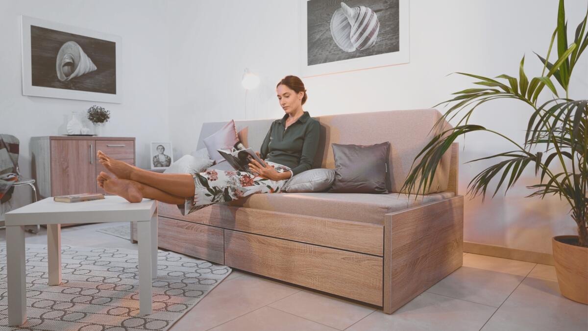 Rozměr postele Dopio: 90 x 200 cm, po rozložení 170 x 200 cm.