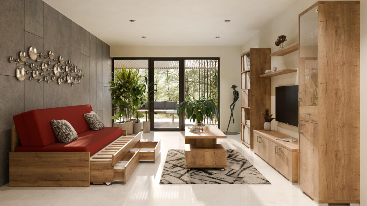 Postele Trio se vyrábějí v LTD a v masivním jádrovém buku v několika barevných provedeních. Čela postelí mohou mít ostré nebo oblé rohy. Postel se dodává včetně zásuvek.